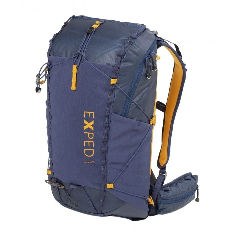 External daisy chains and EXPEDs exclusive Tool Blade combine to securely transport ice tools and other hardware. A removable compression cord with toggle adjustment compresses the load when necessary. Thermo-formed back panel and padded, contoured shoulder straps are comfortable and quick drying. Impulse 15 is sold with a lightweight waist strap; 20 and 30 liter versions with removeable, low-profile, padded hip belts, each with a small, zippered stretch pocket.