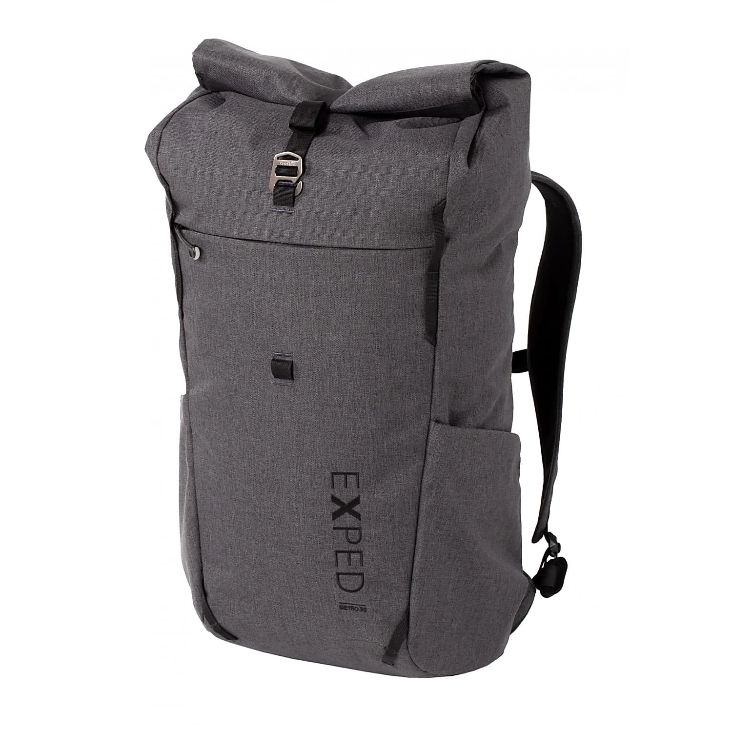 The simple, roll-top main compartment with thermo-formed back panel is made of durable and water-repellent polyester and is environmentally-friendly bluesign-certified. The Metro 30 by EXPED offers a padded laptop compartment that is zipper-accessible from the outside. Pouches for umbrellas, water bottles or the daily newspaper are placed low on each side. A zippered slot pocket on the outside holds wallet and phone and has a carabiner-leash for keys.