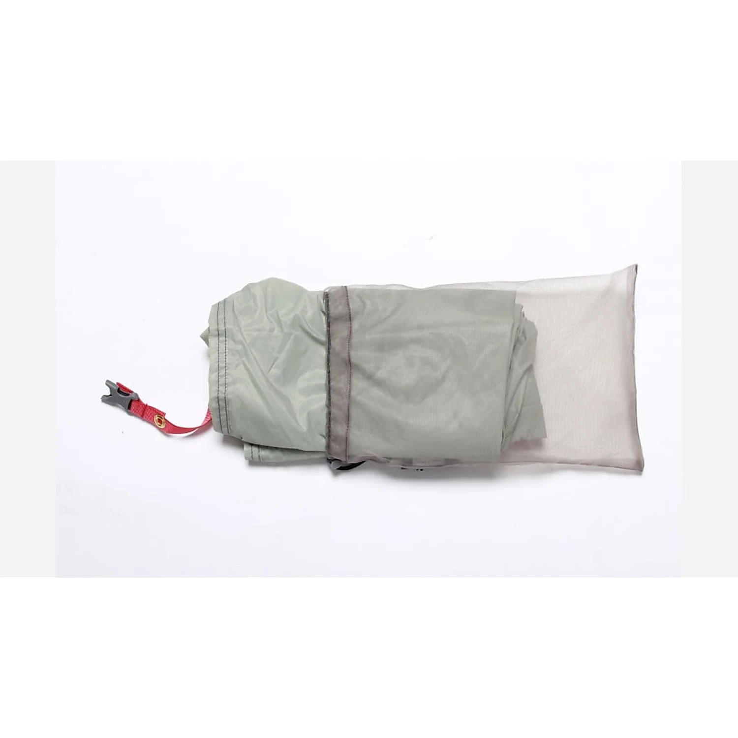 The Mira III HL Footprint by EXPED is shaped like, but smaller than the tent floor to prevent rain from collecting between footprint and tent floor. It also covers the vestibule floor space to protect the vestibule from dirt and humidity. The footprint attaches with adjustable, elastic cords.