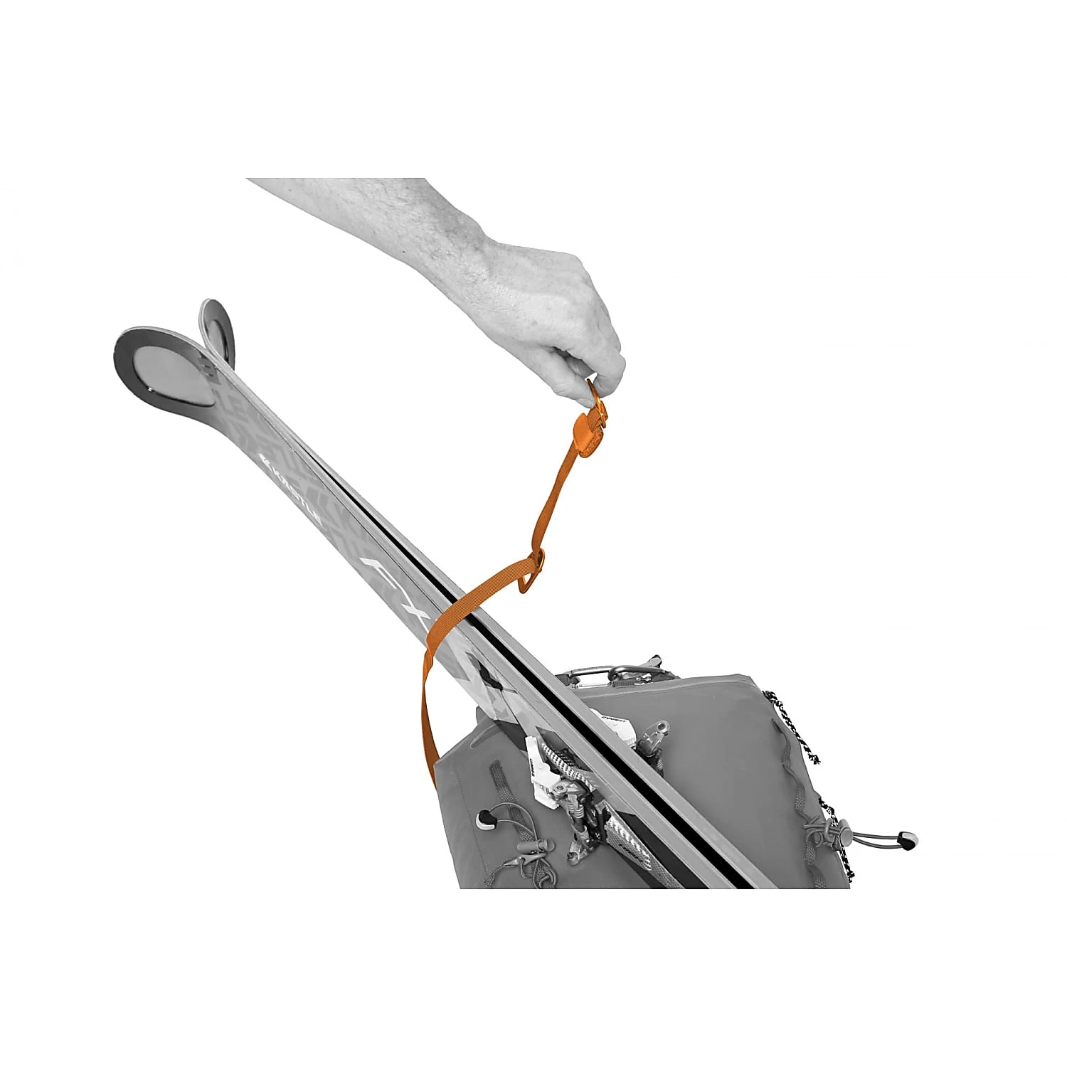 The weatherproof and agile alpine pack offers with a side-entry zipper for easy access to the taped main compartment. The generous zippered front pocket is suitable for a shovel blade, ski skins etc. An excellent ski attachment system and various anchor points for additional gear make the Serac 35 by EXPED the perfect pack for all-season use in any weather condition.