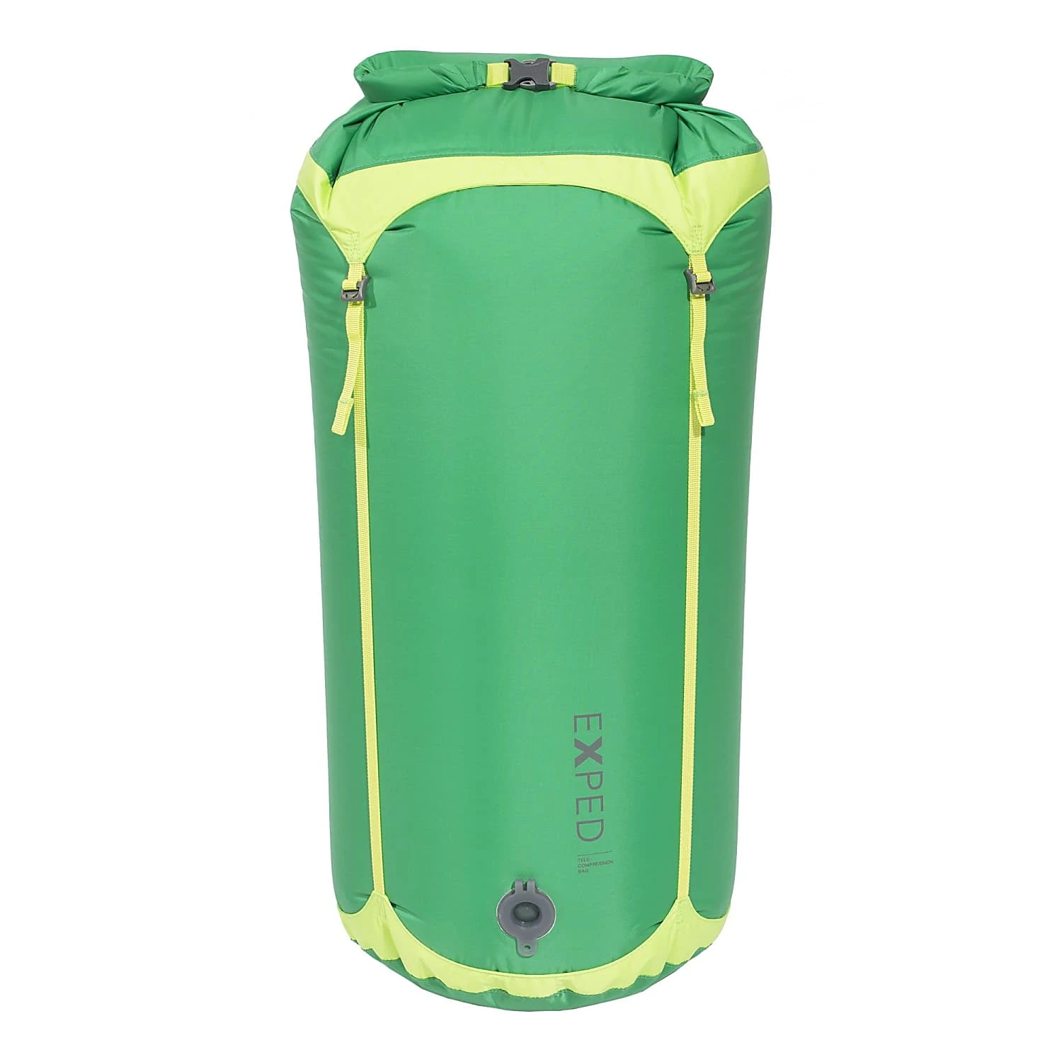 The Waterproof Telecompression Bag L by EXPED is a compression bag with purge valve and vertical compression straps.